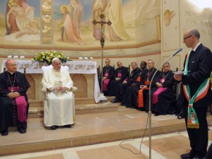 Assisi, 13 marzo 2014: è trascorso un anno dal “rientro” di San Francesco nelle pieghe dello spazio e del tempo, attraverso l’evocazione simbolica del suo nome, con il primo Papa della storia che prende il nome del poverello di Assisi. Forse, ancora, dobbiamo ampliare la consapevolezza sui segni e sui valori di questa nuova alba per l’umanità che “ricolloca” al centro, come ci invita Papa Francesco, la persona e la dignità da costruire, per tutti, con l’impegno di una comunità in cammino.