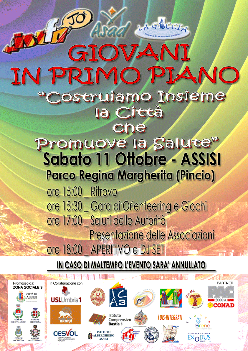Ad Assisi nel pomeriggio di sabato prossimo 11 ottobre, presso il Pincio (Parco Regina Margherita), si terrà un evento di promozione della salute.
