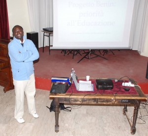 Illustrando il Progetto , venerdì sera nell’auditorium della scuola media “F. Pennacchi” di Petrignano d’Assisi, il Professor Sourou, ha condotto i partecipanti attraverso un ricco excursus misto di storia, geografia e attualità del Benin a comprendere l’importanza di vedere sorgere un centro che sia un laboratorio di educazione e di formazione per i giovani di quello Stato e dei paesi limitrofi e un ponte con i ricercatori, studiosi e giovani del resto del mondo.