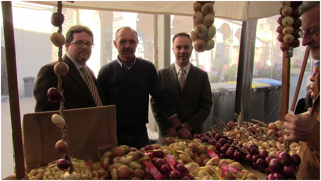 Cannara, 5 novembre 2014 – La Cipolla di Cannara presente ad UNTO. C’è anche la Cipolla di Cannara tra le eccellenze presenti alla rassegna organizzata dal Comune di Assisi e dedicata all’olio extra vergine ed ai prodotti agricoli ed alimentari del territorio. Il Sindaco Fabrizio Gareggia plaude all’impegno del Consorzio “Cipolla di Cannara”: “Insieme stiamo svolgendo un grande lavoro di promozione del nostro prodotto. Dopo il patto di amicizia con Walla Walla, la partecipazione ad UNTO ci consente di far conoscere la nostra cipolla anche ai tanti stranieri che visitano abitualmente Assisi”. Di ottima iniziativa parla anche l’assessore all’Agricoltura del Comune di Cannara, Federico Bibi: “Queste attività di promozione sono una parte del grande lavoro che stiamo facendo insieme a tutti i produttori cannaresi. In particolare, la nostra attività si è focalizzata su alcuni obiettivi principali: l’ottenimento del riconoscimento europeo IGP, lo studio di metodi di produzione sostenibili e rispettosi dell’ambiente e la trasformazione del prodotto. Siamo profondamente convinti che le produzioni agricole di pregio, e della cipolla in particolare, possano rappresentare un importante volano per lo sviluppo del nostro territorio”.