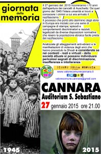 La Giornata della Memoria, istituita per volere del Presidente della Repubblica Carlo Azeglio Ciampi, con legge n.211 del 20 luglio 2000, quest’anno verrà celebrata a Cannara per iniziativa dell’associazione Valore Comune, presieduta da Giampaolo Trinoli.