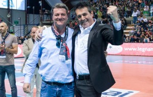 Nelle foto: i Block Devils schierati – De Cecco in palleggio – il presidente Sirci con il presidente dell’Emma Villas Giammarco Bisogno