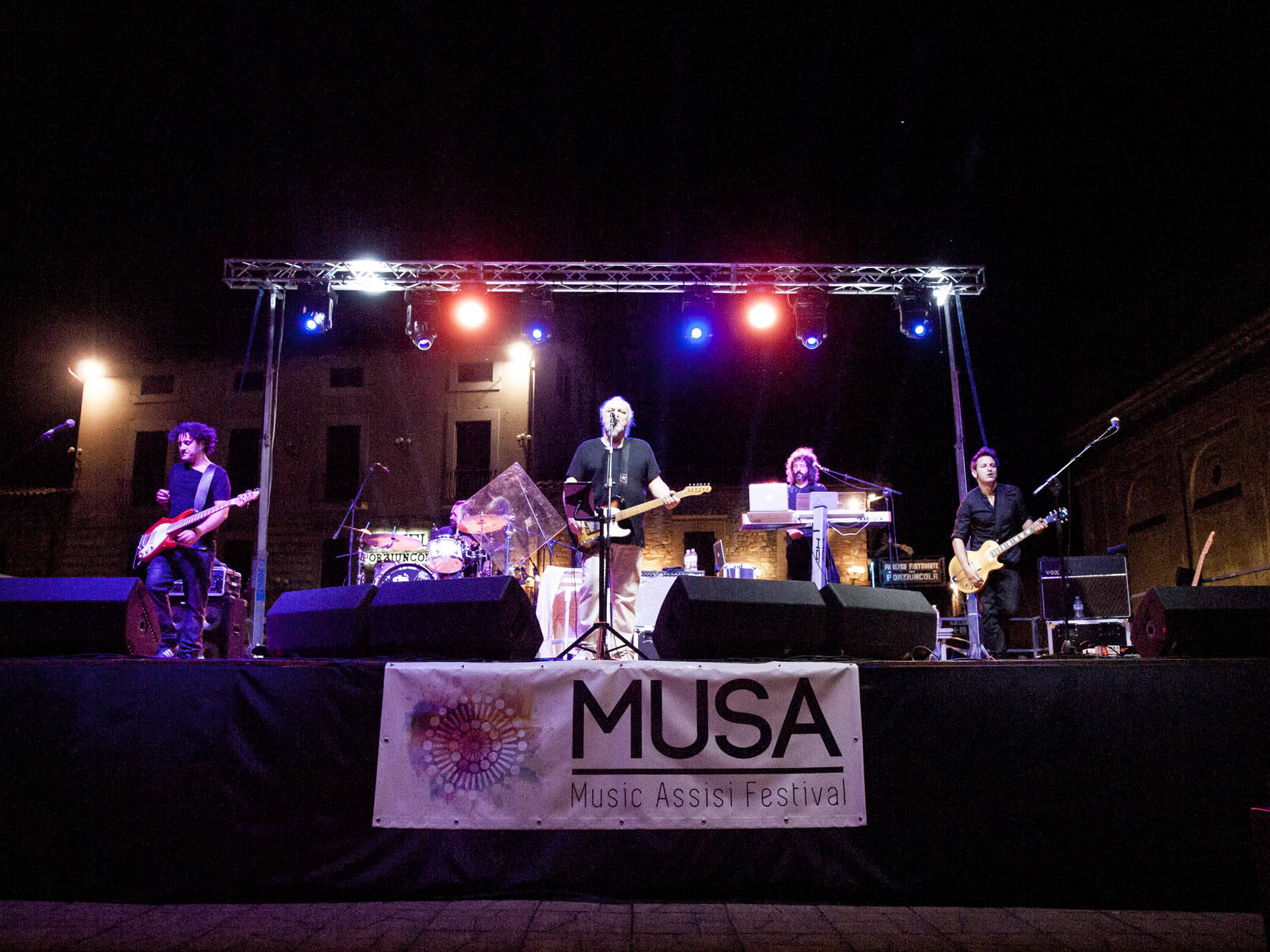ASSISI, 13 luglio 2015 – Una serata intensa quella che domenica 12 luglio ha caratterizzato il MUSA Music Assisi Festival, grazie al concerto di Eugenio Finardi e la sua band. Il cantautore milanese ha saputo incantare il pubblico con una esibizione davvero “Fibrillante” che lo ha consacrato ancora una volta, se ce ne fosse stato bisogno, come uno tra i maggiori esponenti del nostro panorama musicale. Emozioni ed energia  hanno caratterizzato il suo inconfondibile sound in una Piazza Garibaldi (Santa Maria degli Angeli) gremita, che ha accompagnato il cantante intonando le sue canzoni storiche, parte del patrimonio musicale di tante persone presenti alla serata.