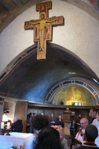 Terminati i lavori, ha avuto luogo una breve celebrazione della Parola, durante la quale è stato proclamato il brano evangelico di Lc 9,18-24 a cui è seguita la lettura di un testo delle Fonti Francescane in cui si narra proprio del primo, fondamentale, episodio di Francesco a San Damiano (FF 1411). In allegato il testo pronunciato dal Ministro Provinciale dei Frati Minori dell’Umbria, p. Claudio Durighetto, che ha presieduto la celebrazione di accoglienza del Crocifisso.