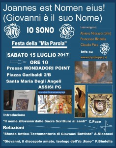 Insomma nel nome di Giovanni approfondiremo la Parola, faremo festa della “Mia Parola”, che nell’ Io Sono come Parola, come Voce, come Eco di Voce, come immagine speculare, come suono dell’Io Sono, trova le motivazioni di una festa che nasce dallo studio delle cose di Dio … Lo studio delle cose di Dio infatti, è già amore di Dio è sempre amore di Dio.