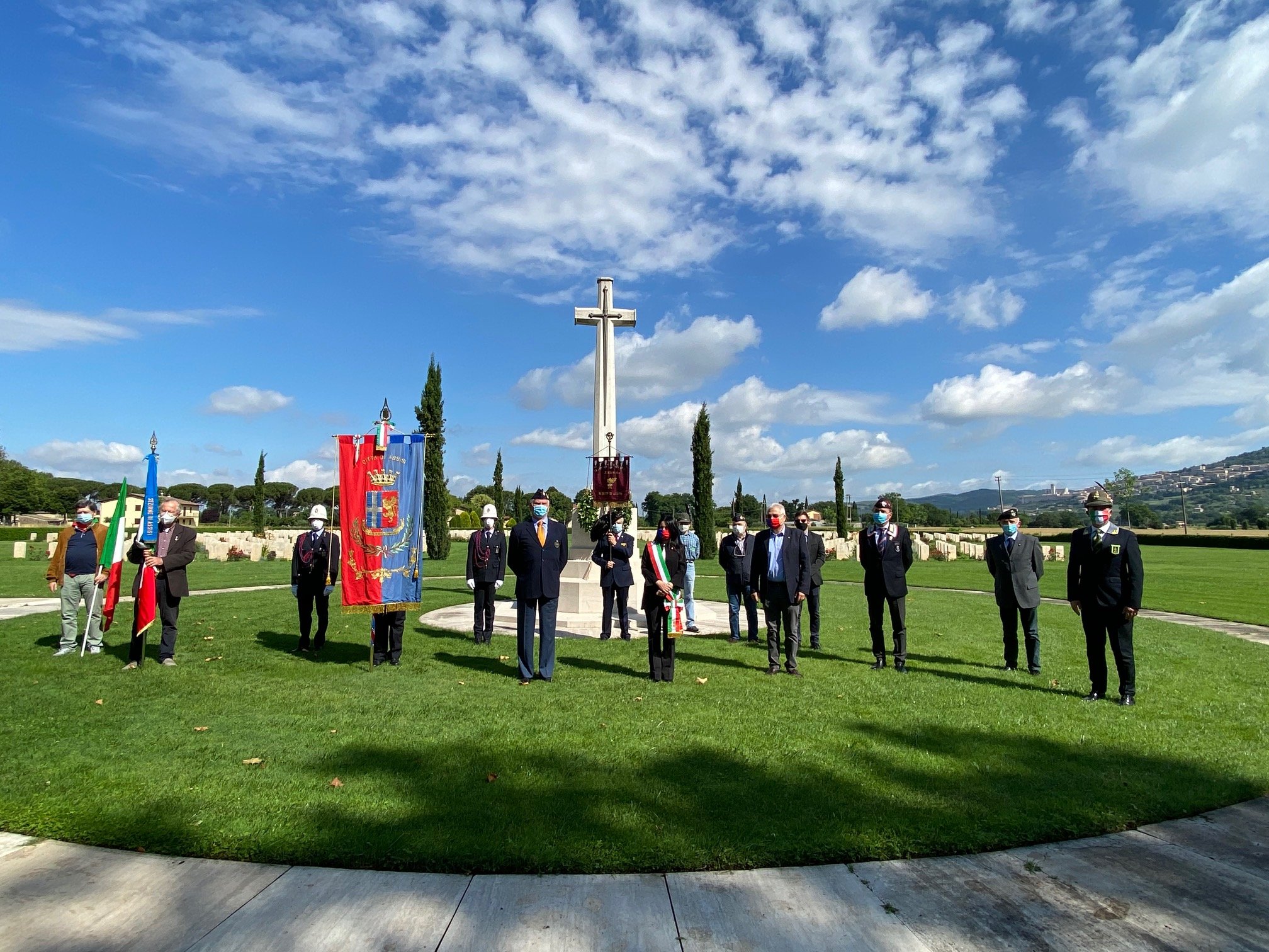 I minuti di raccoglimento nel cimitero di guerra Assisi War Cemetery sulle note del Silenzio sono stati intensi e osservati con commozione dai rappresentanti delle associazioni, a cominciare dal generale Francesco Tofi, presidente del Comitato per le adozioni dei caduti Commonwealth, oltre a Luigino Ciotti, delegato Anpi; Adriano Tofi, presidente Associaizone mutilati e invalidi; Francesco Mariottini, Associazione Bersaglieri; Alessandro Bilotta, Associazione Alpini; Giovanni Granato, Associazione Finanzieri e Giancarlo Mirti, Associazione Carabinieri in congedo.