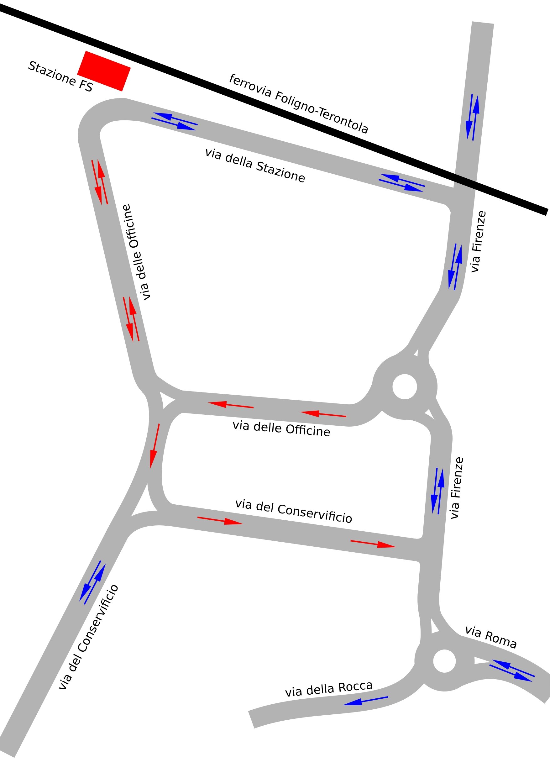 L’impresa attuatrice sta realizzando in questi giorni le opere di segnaletica orizzontale e verticale necessarie, a partire dalla rotonda che affaccia su Via Firenze. Il nuovo sistema viario prevede due vie a senso unico (Via del Conservificio in direzione Via Firenze e la nuova strada, in direzione Poste) e la nuova via di accesso alla stazione ferroviaria.