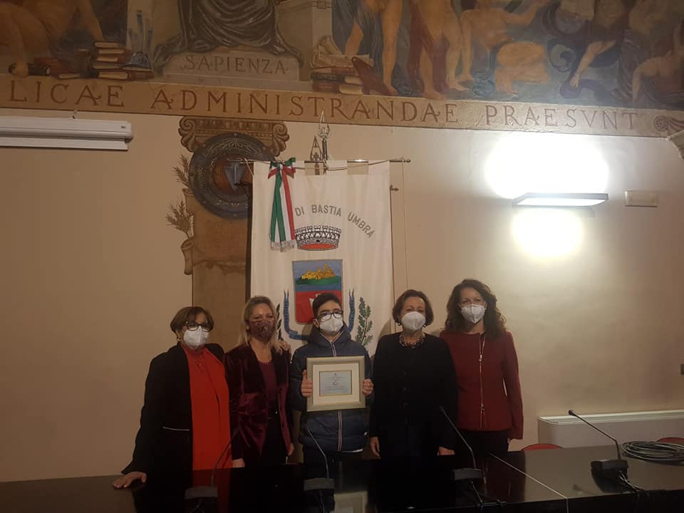 La cerimonia di premiazione si è svolta ieri in Sala della Consulta del Palazzo Municipale nel rispetto delle norme anti-covid alla presenza dei soli alunni finalisti e le rappresentanti la Scuola e il Comune. Oltre al collegamento on–line con le componenti il Tavolo, una diretta Facebook sulle pagine istituzionali ha consentito di estendere la fruizione dell’iniziativa a tutta la cittadinanza; il video della manifestazione è pubblicato sulle pagine FB Comune di Bastia Umbra e Paola Lungarotti Sindaco.
