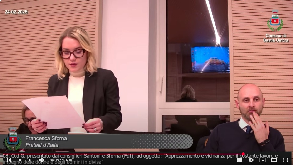 Bastia Umbra, 07/03/2025 – Nell’ultimo consiglio comunale di Bastia è stato approvato all’unanimità l’atto presentato dai nostri Consiglieri Santoni e Sforna, a sostegno del lavoro che svolgono tutti i giorni gli uomini e le donne in divisa. Riteniamo per certi aspetti disarmante il recente susseguirsi di episodi di rimostranza, e talvolta addirittura di violenza, ai danni delle Forze dell’Ordine; eventi dietro ai quali la politica, locale e nazionale, è chiamata ad intervenire tempestivamente. In tal senso riteniamo che le istituzioni possano mettere in campo iniziative multiple, per contrastare in modo indiscutibile la deriva violenta che rischia di minare la nostra convivenza civile.