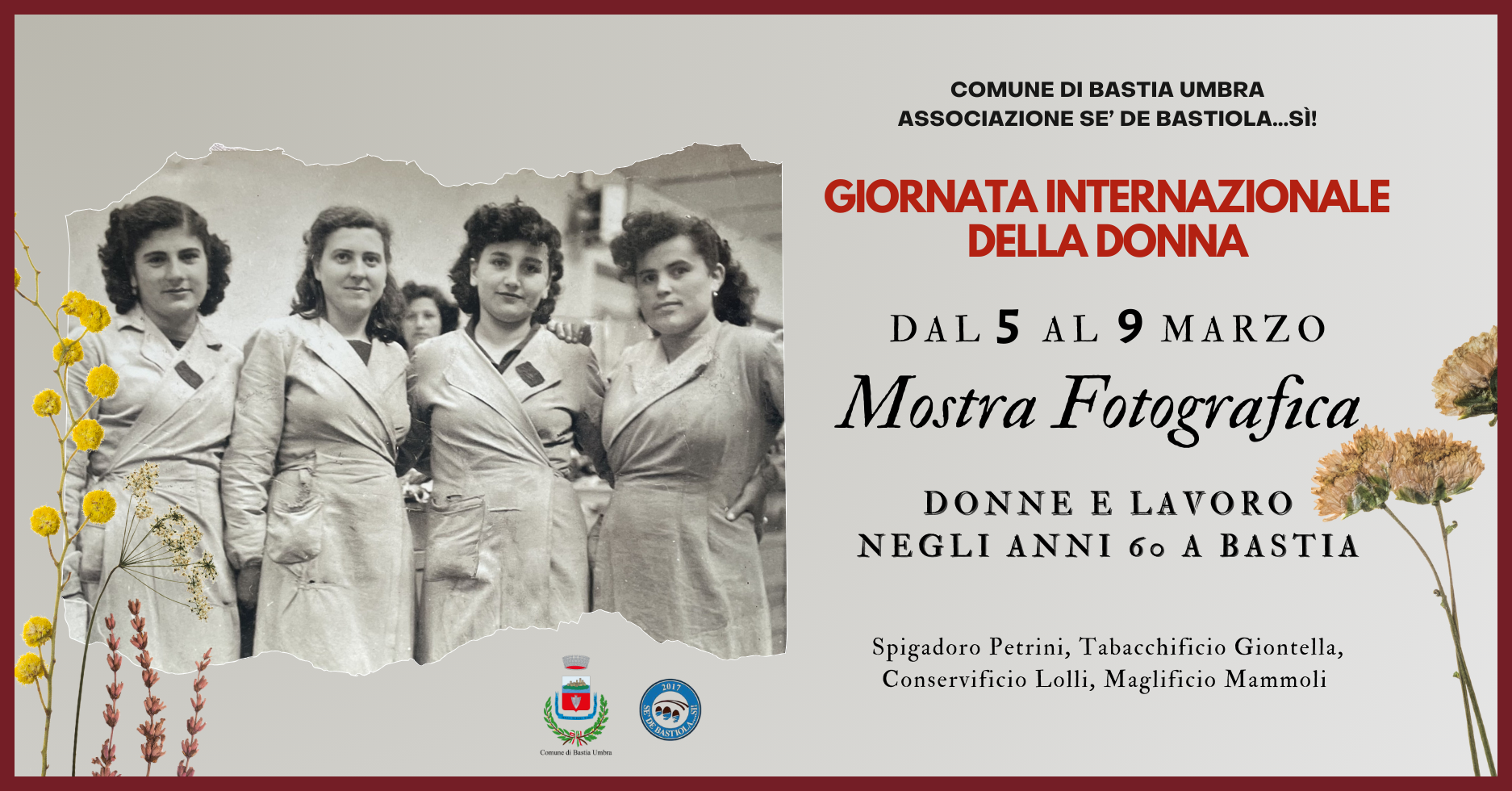 Bastia Umbra, 04/03/2025 – In occasione della Giornata Internazionale della Donna, l’Associazione “Sè de la Bastiola…sì!” in collaborazione con il Comune di Bastia Umbra è lieta di presentare una mostra fotografica che esplora il ruolo fondamentale delle donne nel mondo del lavoro negli anni ’60 a Bastia. Un viaggio visivo che racconta il contributo invisibile ma imprescindibile delle donne in settori chiave dell’economia locale, come la Spigadoro Petrini, il Tabacchificio Giontella, il Conservificio Lolli e il Maglificio Mammoli.