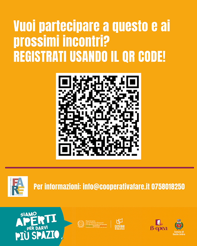 Bastia Umbra, 28/04/2025 – Continuano gli appuntamenti di B-FOR il Forum dei Giovani di Bastia Umbra con il terzo incontro tematico previsto per Mercoledì 30 Aprile 2025 presso la Biblioteca Comunale “Alberto La Volpe” di Bastia Umbra.