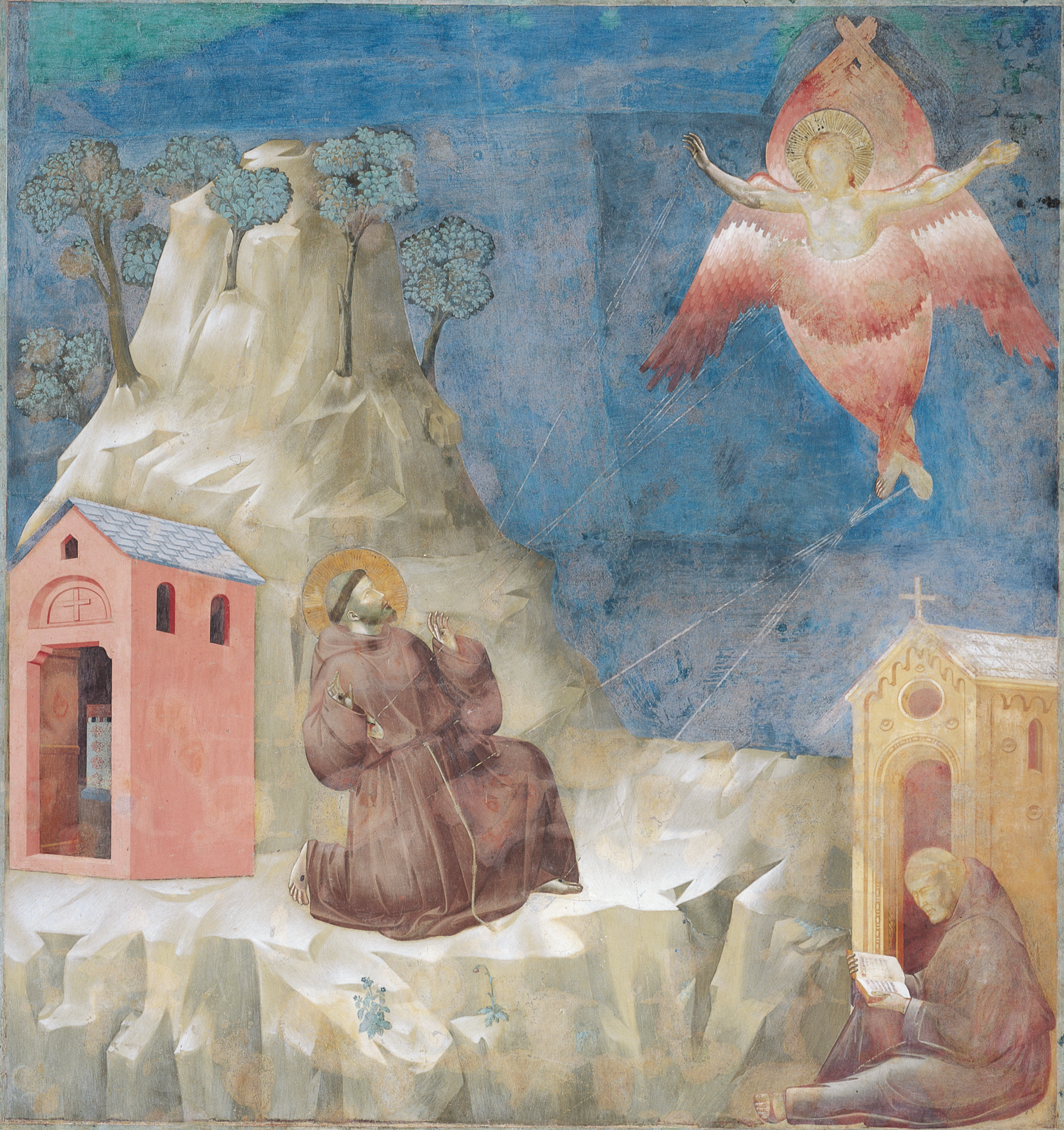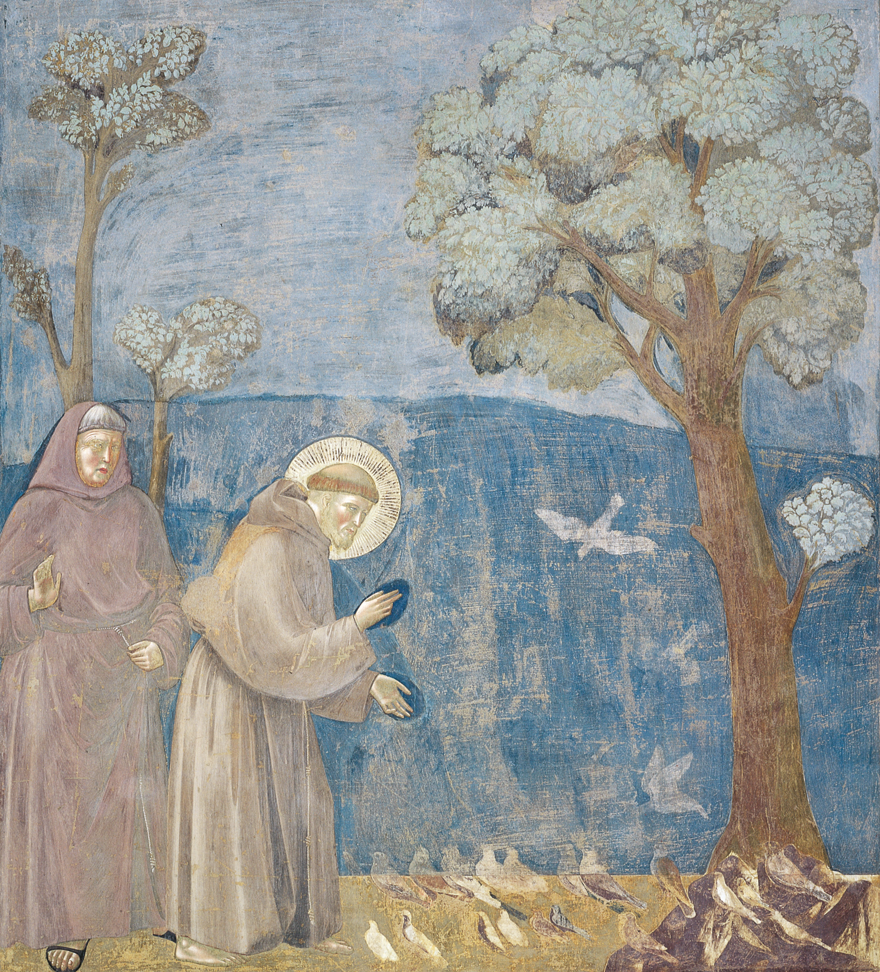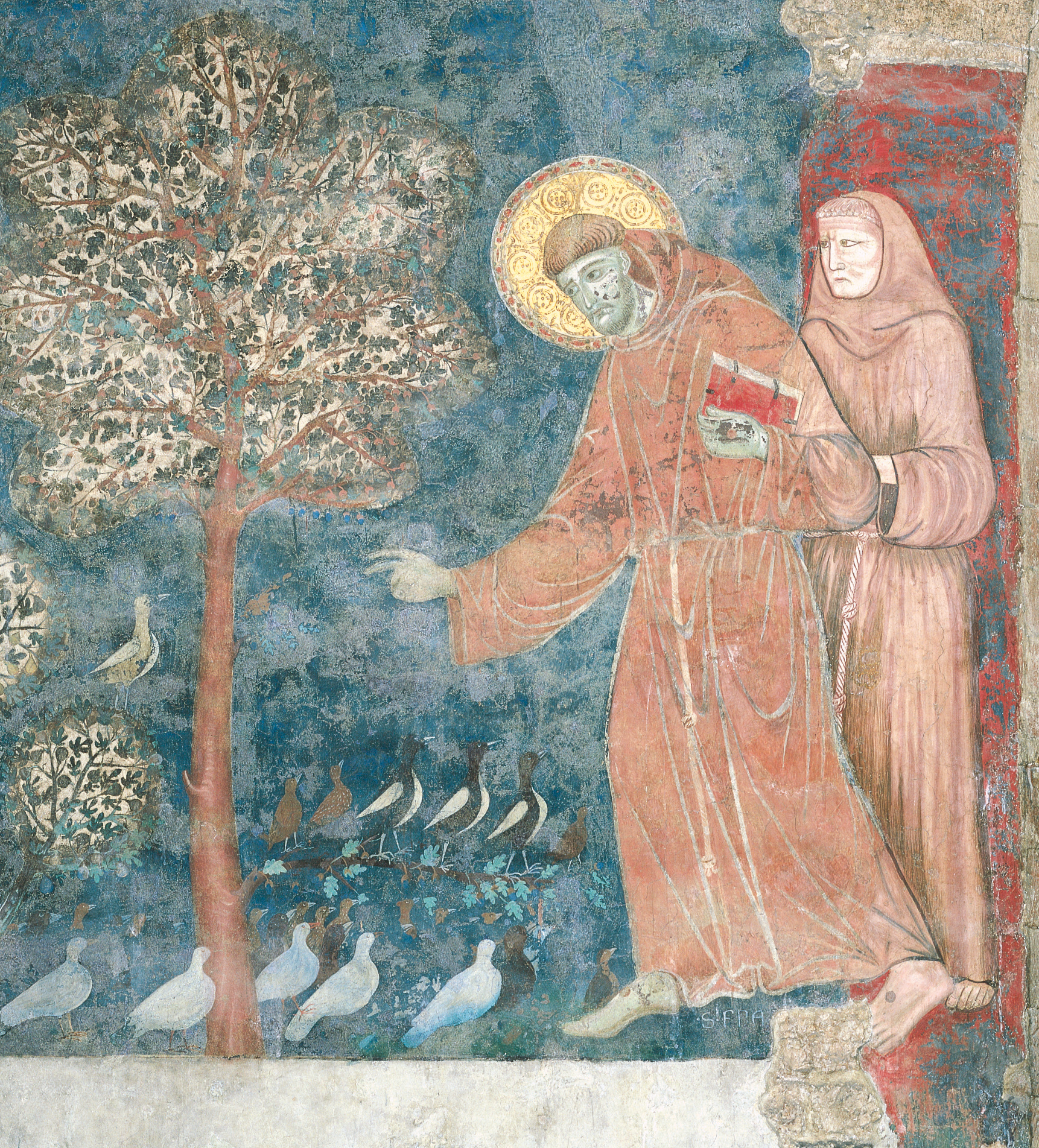 Frate Leone – chiamato nelle Fonti Francescane “pecorella del Signore” – ha accompagnato san Francesco durante il suo cammino di vita religiosa ed è stato presente nei momenti cruciali della sua vita, quali l’impressione delle stimmate. Nella Basilica di San Francesco sono spesso rappresentati insieme, sia nei due dipinti della predica agli uccelli, che nei vari affreschi della stimmatizzazione di Francesco.