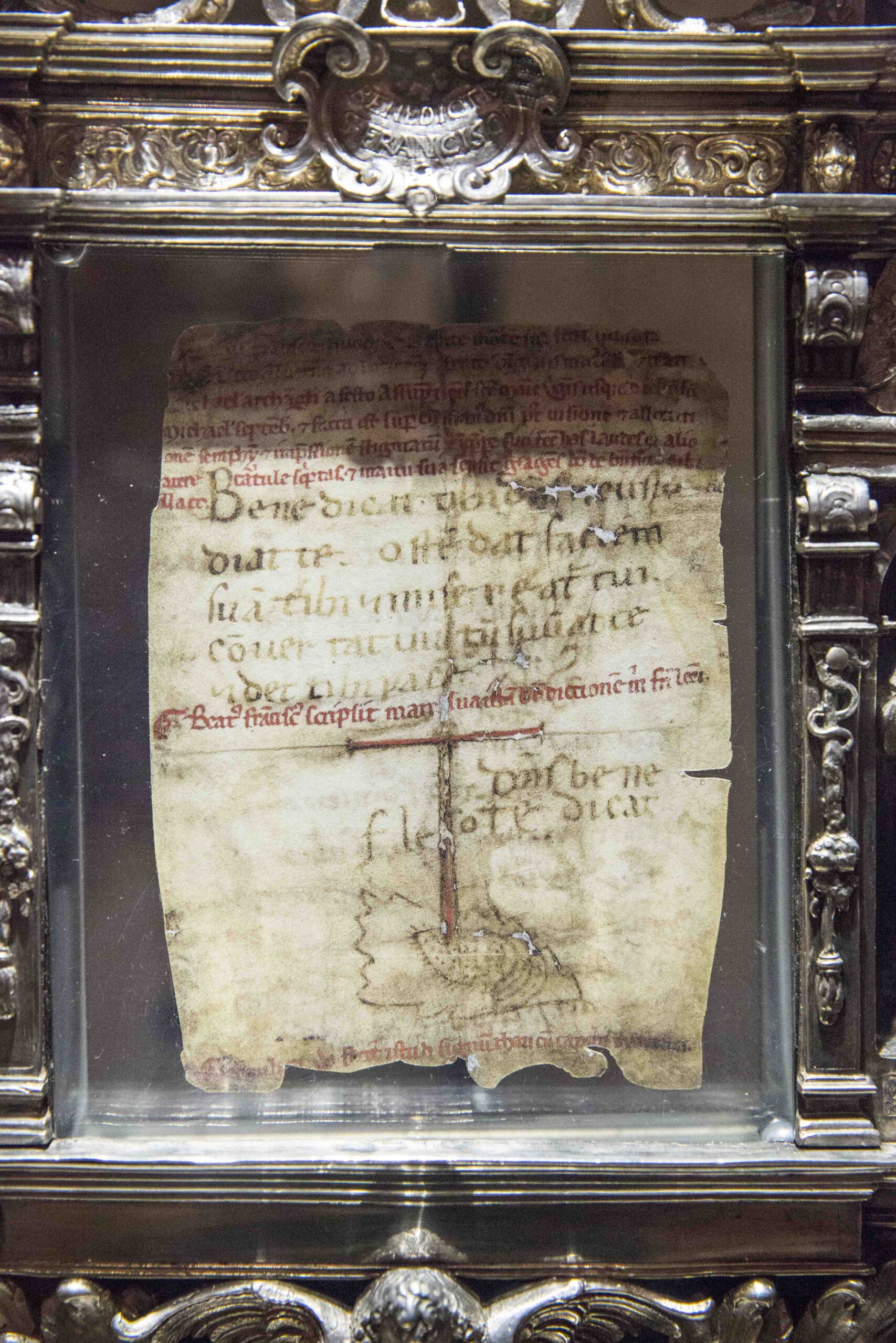 Alla fine del suo messaggio, il Custode fa rimento alla Chartula, preziosissima reliquia, foglio di pergamena autografo di san Francesco, che custodisce la benedizione a frate Leone, scritta in occasione dell’evento delle stimmate nel 1224 a La Verna.