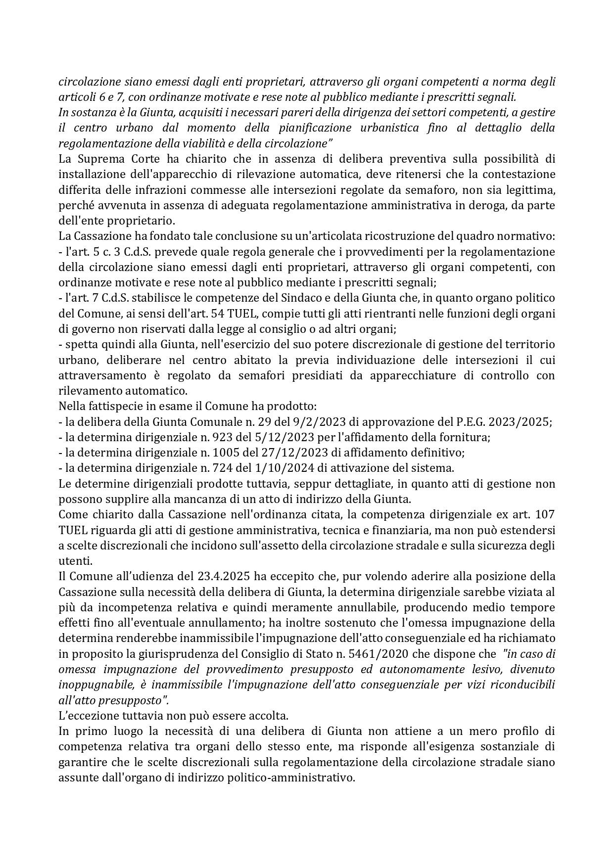 5) “Se anche fosse astrattamente concepibile che la giunta comunale di Bastia dedichi (o sprechi) del tempo a decidere dove debbano essere installati autovelox, strisce pedonali e t-red, considerato che amministra un territorio relativamente piccolo, immaginate cosa potrebbe succedere in un comune come Roma”.