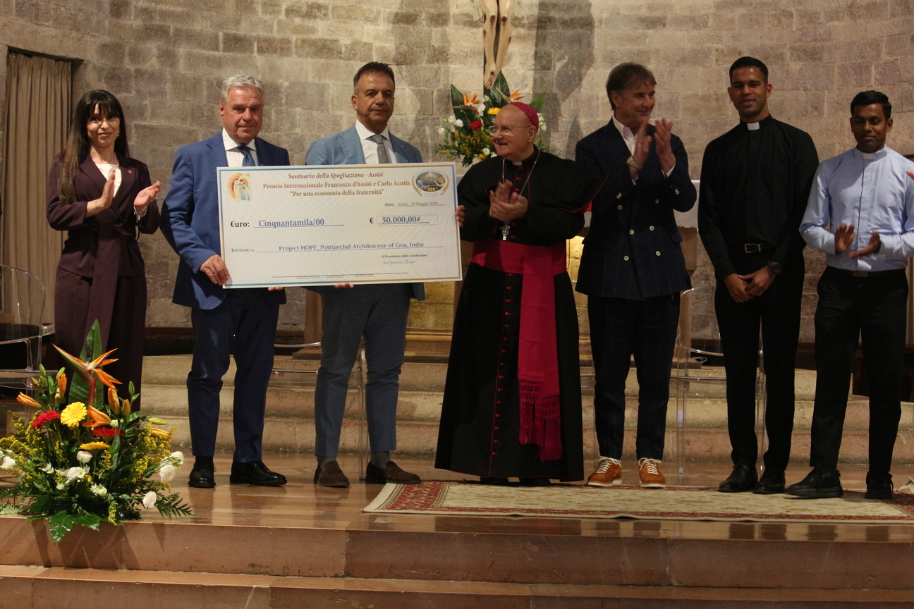 Sentito anche il ringraziamento del cardinale Filipe Neri António Sebastião do Rosário Ferrão, arcivescovo di Goa e Daman e settimo Patriarca delle Indie Orientali, che ha mandato un messaggio nel quale esprime la sua felicità per il premio che rende “possibile un progetto, nato nella mente dei giovani, che crea un nuovo modello di economia: come ci esortava il nostro caro papa Francesco, una ‘economia diversa, quella che fa vivere e non uccide, include e non esclude, umanizza e non disumanizza, si prende cura del creato e non lo depreda’. Adesso, riflettendo anche le parole del papa Leone XIV, andiamo avanti insieme, la diocesi di Assisi e di Goa in India, ‘uniti, mano nella mano con Dio e tra di noi’”.