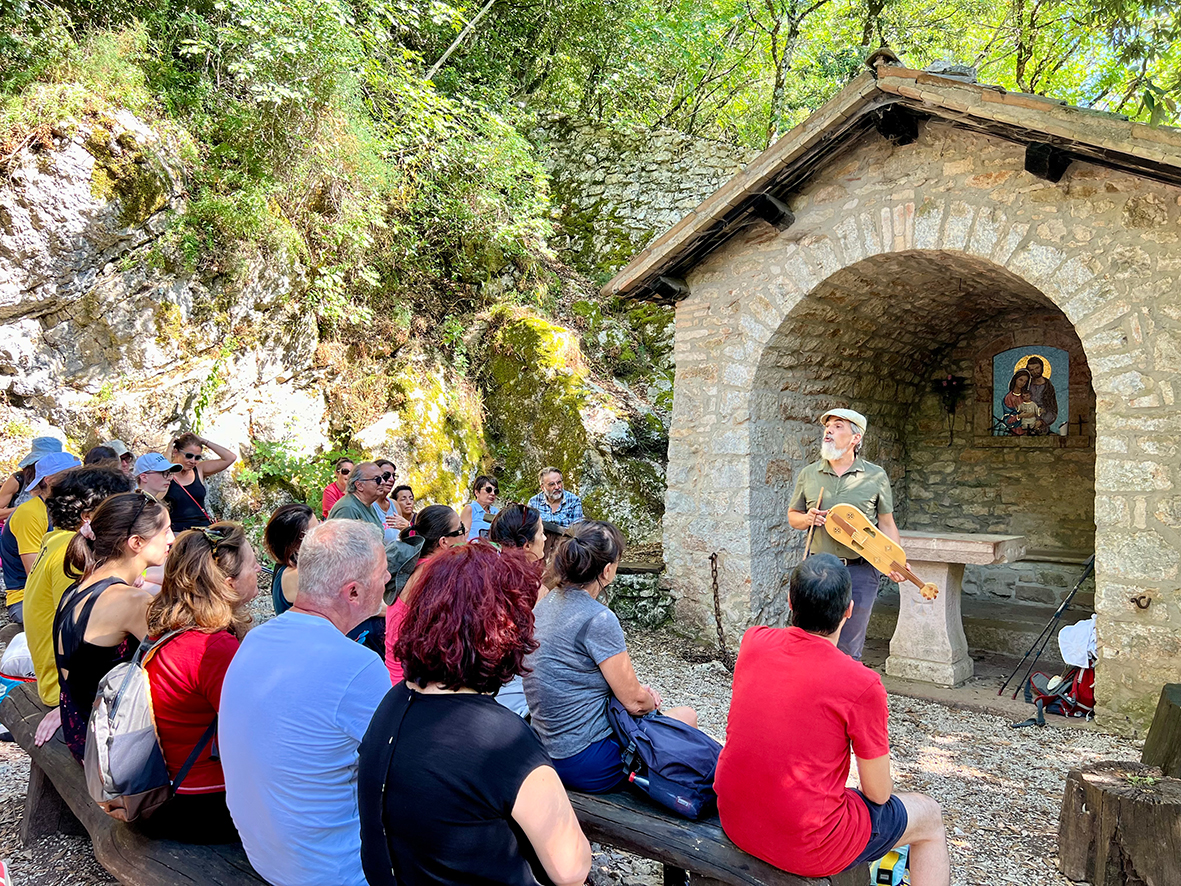 Durante il tragitto, l’Ensemble Micrologus, gruppo di fama internazionale nel settore della musica antica, eseguirà canti e musiche ispirati al “Cantico delle Creature”, in occasione degli 800 anni del primo poema in lingua volgare italiana, scritto nel 1225 da Francesco di Assisi e dedicato alla ricerca dell’armonia tra uomo e natura. Gran finale con il concerto all’interno e all’esterno dell’antica Abbazia e poi degustazione di prodotti tipici e birra artigianale, fatti a mano dalle suore benedettine, che gestiscono la struttura.