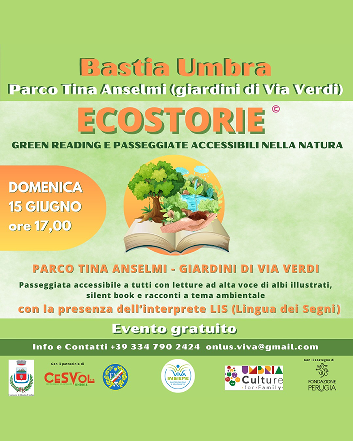 Bastia Umbra, 11/06/2025 – Domenica 15 Giugno dalle ore 17:00 il Parco Tina Anselmi (giardini di Via Verdi) sarà il teatro di “EcoStorie”, una giornata in natura tra passeggiate accessibili a tutti e letture ad alta voce di libri illustrati, silent book e racconti a tema ambientale.