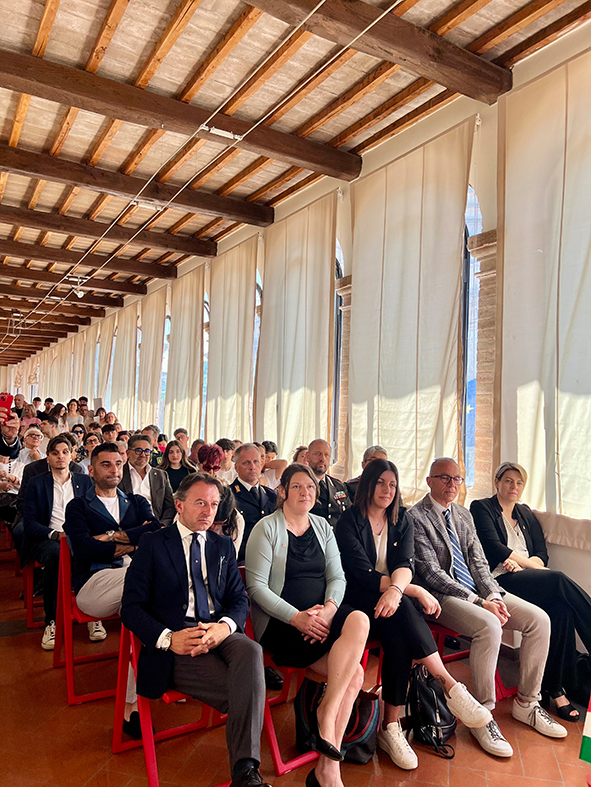 “La Carta costituzionale – ha evidenziato Stoppini – è il fondamento della nostra Repubblica, sancisce i diritti di cui oggi tutti noi possiamo godere, grazie al sacrificio di uomini e donne che circa 80 anni fa hanno combattuto e dato la vita per la libertà e la democrazia, vivendo ciò che oggi vediamo purtroppo ancora succedere in Ucraina e Palestina. Voi giovani dovete sentirvi responsabili di questa eredità e continuare a promuovere tali valori, che spesso vengono messi in discussione. Basti pensare alle frasi offensive e razziste, recentemente circolate attraverso i social contro il neo eletto consigliere comunale Adil Zaoin solo per il fatto di essere musulmano, il primo cittadino musulmano nel Consiglio comunale di Assisi. Parole vergognose, legate a un clima di odio che non appartiene a questa città e che respingiamo, esprimendo totale solidarietà al nostro concittadino Adil”.