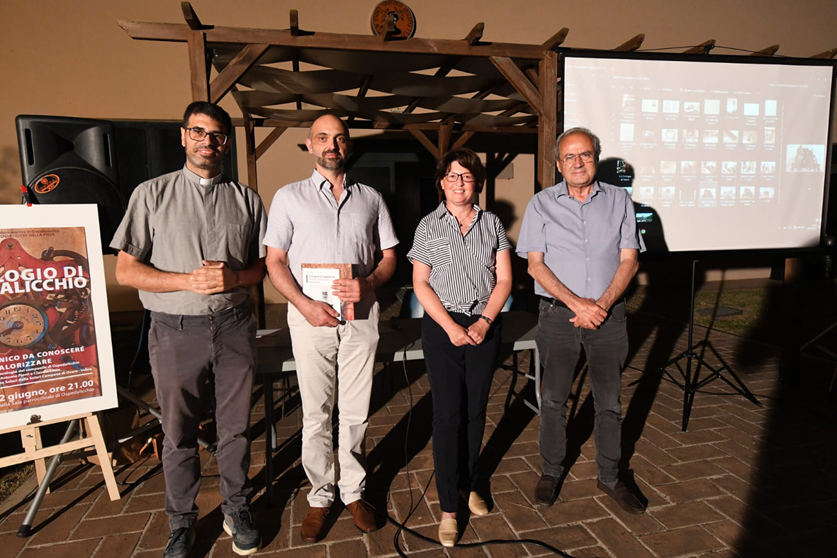 Durante la serata, Roberto Solari della Solari Campane, ditta specializzata nel restauro e nella manutenzione degli orologi monumentali prodotti dalla storica casa friulana, ha illustrato le particolarità che rendono l’orologio di Ospedalicchio un pezzo unico nel suo genere. Questo capolavoro di orologeria artigianale è stato realizzato appositamente da Alfeo Solari e Valentino Solari – quest’ultimo nonno di Roberto – per soddisfare le specifiche esigenze dell’allora parroco Don Antonio Ragni.