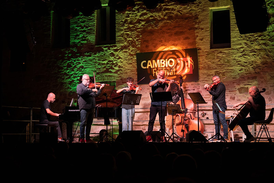 Chiuse le tappe di luglio, ad agosto il gran finale di Cambio Festival 2025 con due date in trasferta, a Villa Fidelia di Spello: appuntamento il 29 agosto alle 21.45 (in entrambi i casi l’ingresso ha un costo di 15 euro ed è gratuito under 18) con TrioRox ft Gianluca Petrella in Moods, una serata che sarà impreziosita dal dj set del “Dj Team” di Cambio Festival (Cap – Franco B – Max P, al quale si aggiunge Stefano Tucci) e il 30 agosto con Matteo Chimenti Sextet – Seeds of Influence, espressione di una nuova scena di grande vivacità e di cui si sentirà parlare, volge una riflessione sui modi in cui la collaborazione diventa a sua volta reciproca influenza, e su come questa può trasformarsi in una nuova poetica musicale.