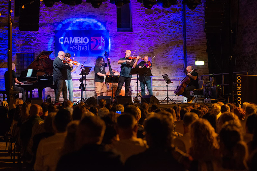 Assisi, 07/07/2025 – Quattro date tutte sold out per Cambio Festival 2025, al Castello dei Figli di Cambio: dopo Lisa Manara ft Claudio Vignali e “Lisa canta Ornella”, con la partecipazione alla tromba di Riccardo Catria, e i festeggiamenti per i 30 anni di carriera di Javier Girotto & Aires Tango, tutto esaurito e grande emozione con Alessandro Quarta “I Cinque elementi”, l’opera in cui il violinista e compositore, che suona un violino Alessandro Gagliano del 1720, accompagnato dal pianista Giuseppe Magagnino e dai Solisti Filarmonici Italiani, ha raccontato in musica luci e ombre degli elementi, in un lavoro di ricerca e introspezione partito dall’ultimo: “Il Quinto elemento – ha detto – mi ha dato la ragione per scrivere. Una forma di ringraziamento per tutto quello che ho: il bello e il tragico della vita”.