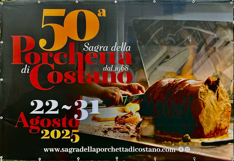 Costano, 22/07/2025 – Costano si prepara a festeggiare il cinquantesimo anniversario della Sagra della Porchetta, una ricorrenza che segna mezzo secolo di storia per una delle manifestazioni più identitarie del territorio. L’edizione 2025 sarà inaugurata il 21 agosto con una serata speciale, pensata per rendere omaggio al passato e sottolineare il forte legame tra la festa e la comunità locale.