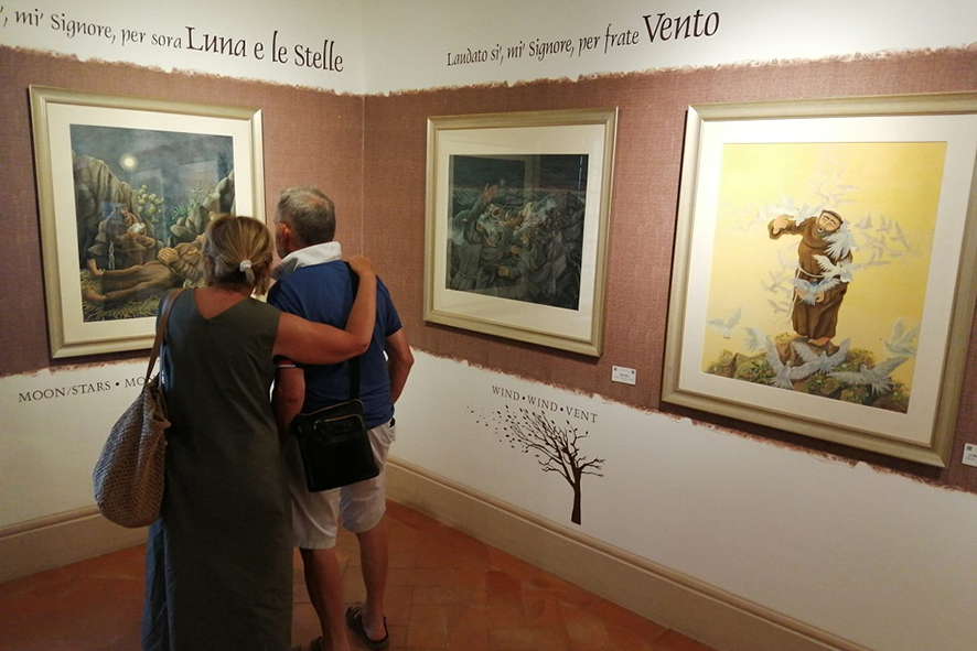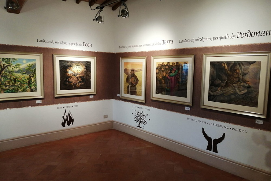Per l’occasione, c’è quindi il privilegio di rivedere esposti i dipinti del ciclo dedicato al Cantico delle Creature, che furono presentati per la prima volta proprio in questo luogo sacro.