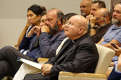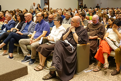 dei trovatori. «Francesco ha bevuto quella poesia d’amore per ciò che non possiedi, per qualcosa di lontano, e in questo sta la nobiltà dell’amare senza possedere». Rondoni ha richiamato il sentimento di essere “tristi e contenti insieme”, tipico degli amanti e, forse, anche dei cristiani: un’attesa gioiosa per qualcosa che ancora non c’è. Ha poi riflettuto sul valore delle parole e sul saluto di Francesco: «Pace a te» non è solo gentilezza, ma un’eco del Risorto, un dono che non possiamo fabbricare. «Noi possiamo fare