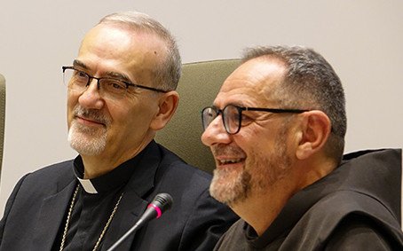 sofferenze e delle speranze della comunità cristiana di Gaza, dove pochi giorni fa ha visitato la comunità latina della parrocchia della Sacra Famiglia, colpita da un bombardamento che ha causato vittime e feriti. «Viviamo un tempo drammaticamente complesso: guerre, squilibri sociali, crisi delle istituzioni internazionali e la violenza che sembra l’unica via per affermare potere. In questo contesto San Francesco rimane un riferimento universale, amato da tutti pur non avendo costruito nulla né risolto problemi