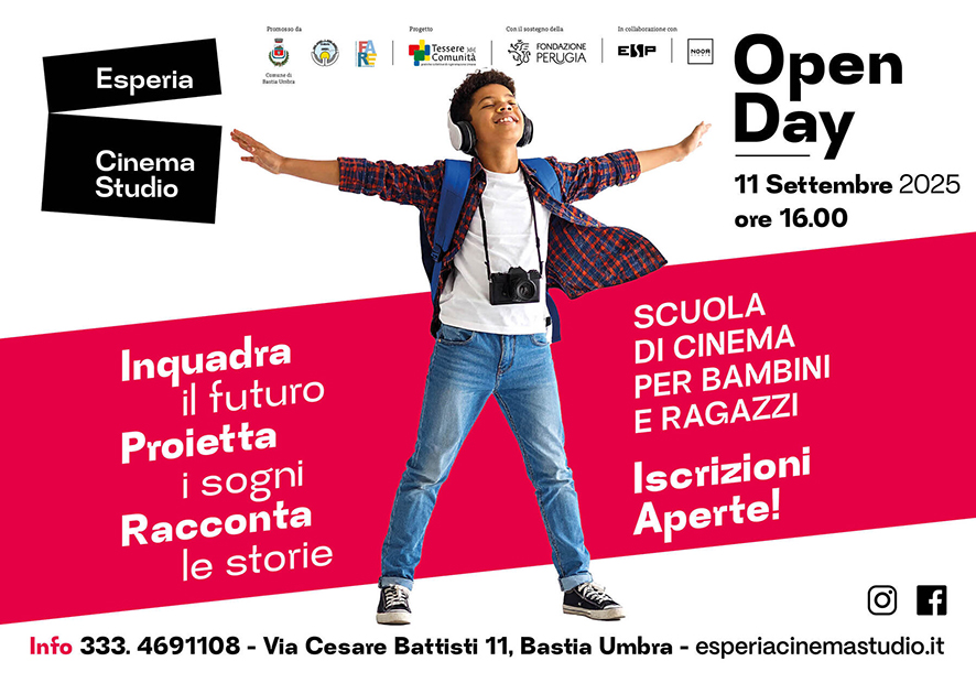 Bastia Umbra, 25/08/2025 – Da settembre sarà possibile iscriversi a Esperia Cinema Studio, la Scuola di Cinema per bambini e ragazzi di Bastia Umbra. I corsi Junior (dedicato ai bambini dai 6 ai 10 anni) e Young (per ragazzi dagli 11 ai 16 anni), per l’anno accademico 2025/2026, avranno inizio nel mese di ottobre.