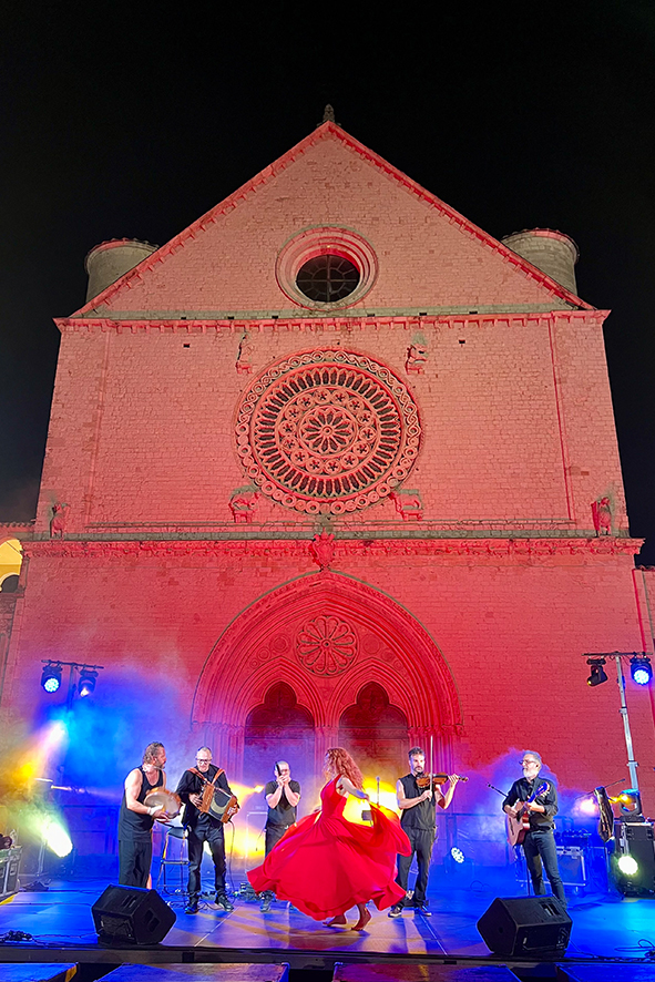 Una serata promossa dalla famiglia Angeletti, organizzata insieme al Comune di Assisi, che ha visto la partecipazione di centinaia di persone, affascinate dall’energia coinvolgente del Canzoniere. “Il miglior omaggio – ha sottolineato Stoppini nel saluto inziale – alla memoria di Carlo Angeletti, attraverso l’energia coinvolgente della musica e della danza, arti nobili che lui tanto amava e valorizzava nel suo impegno per lo sviluppo culturale della città, che va ricordato anche attraverso un riconoscimento pubblico”.