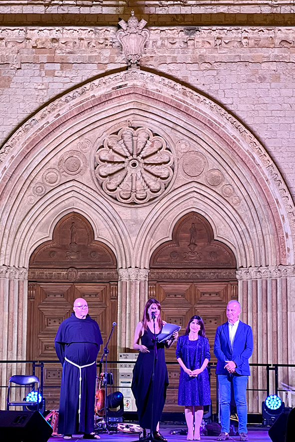 Alla serata, oltre a Fulvia Angeletti, figlia di Carlo che porta avanti l’attività del Piccolo Teatro degli Instabili, sono interventi anche fra Marco Moroni, custode del Sacro Convento di Assisi, e Stefania Proietti, presidente della Regione Umbria.
