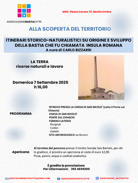 Una passeggiata tra la storia, dalla Chiesetta di San Nicolò, al Ponte sul Chiascio, al sito archeologico con i segni tangibili della laboriosità e dello spirito imprenditoriale dei bastioli, con un approfondimento sulle fornaci laterizi.