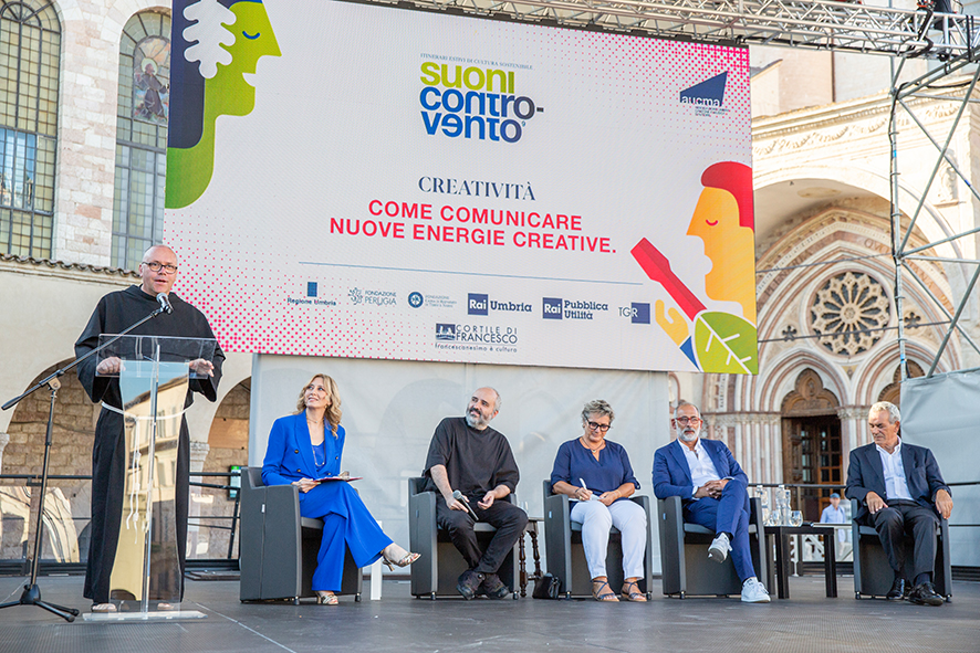 Assisi, 06/09/2025 – Questa sera si è svolta l’anteprima dell’edizione 2025 del Cortile di Francesco, dal titolo CreAzione, con la tavola rotonda dal titolo “Comunicare nuove energie creative” che ha visto la partecipazione di Carlos Casas (CEO – Program Director Fabrica – Benetton), Natalia Borri (President & Chief Creative Director AD Store), Francesco Conticello (Co-founder, Chairman & CEO Casta Diva Group), Antonio Romano (Founder di Inarea – Identity Architectures) e Carlo Verdelli (Editorialista de Il Corriere della Sera). L’evento è stato elaborato e realizzato in collaborazione con il Festival Suoni Controvento e con RAI Umbria. A questo proposito si ringraziano in particolare Lucia Fiumi e il direttore di Rai Umbria Giovanni Parapini.