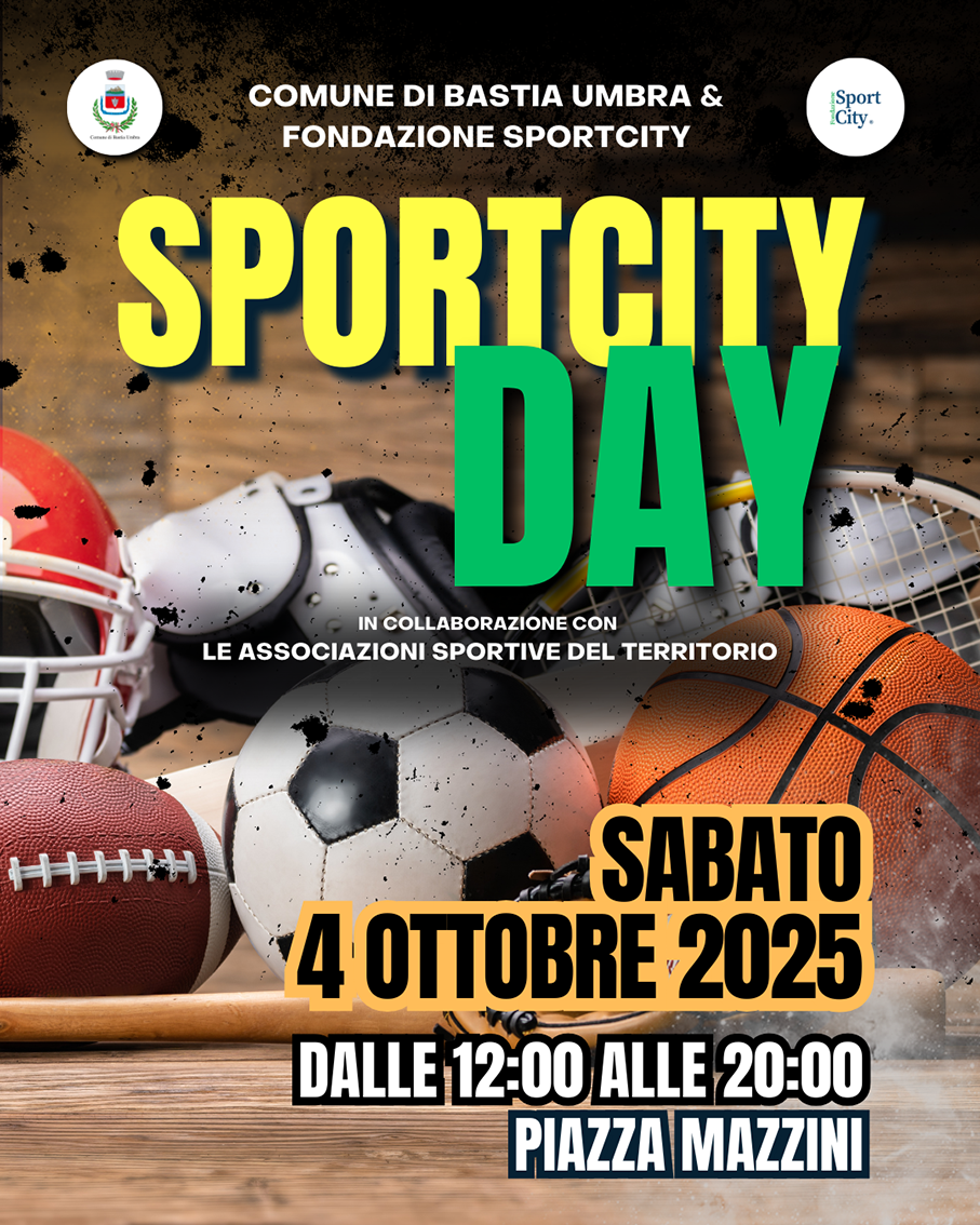 Bastia Umbra, 15/09/2025 – Bastia Umbra aderisce alla rete nazionale della Fondazione Sportcity e organizza, per la prima volta, lo Sport City Day: un’intera giornata dedicata alla promozione della cultura sportiva e del benessere. L’appuntamento è fissato per sabato 4 ottobre 2025, in Piazza Mazzini e Cavour, con un ricco programma di eventi gratuiti e aperti a tutta la cittadinanza.