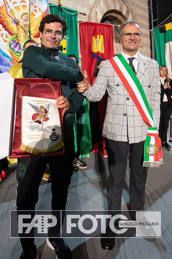 L’assegnazione è avvenuta, avvenuta al termine della Lizza e prima del verdetto ufficiale, ha la proiezione di un servizio televisivo realizzato dal TGR che ha raccontato la sua storia sportiva e umana. A consegnare il premio, nelle mani del fratello Filippo, è stato il Sindaco Erigo Pecci, che ha letto la motivazione ufficiale del riconoscimento. Subito dopo, la piazza ha accolto con emozione il videomessaggio inviato da Francesco dagli Stati Uniti, dove attualmente risiede per frequentare il corso di Ingegneria Aerospaziale presso l’Università dell’Alabama. Nel suo messaggio di ringraziamento, Felici ha espresso gratitudine all’Amministrazione comunale e al Rione San Rocco, che lo aveva candidato al premio, salutando con affetto tutti i cittadini.