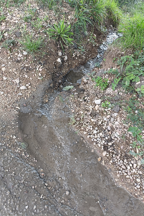 la grave perdita d’acqua in Via Colle del Benzi, a Capodacqua.