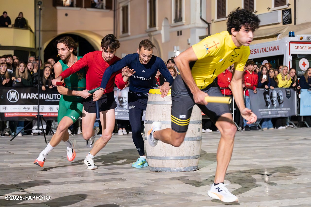 Moncioveta, Portella, Sant’Angelo e San Rocco si sono sfidati nella Lizza, un’emozionante staffetta 4×400 corsa sulla nuova pavimentazione di Piazza Mazzini e caratterizzata da due ripartenze (bidoni).