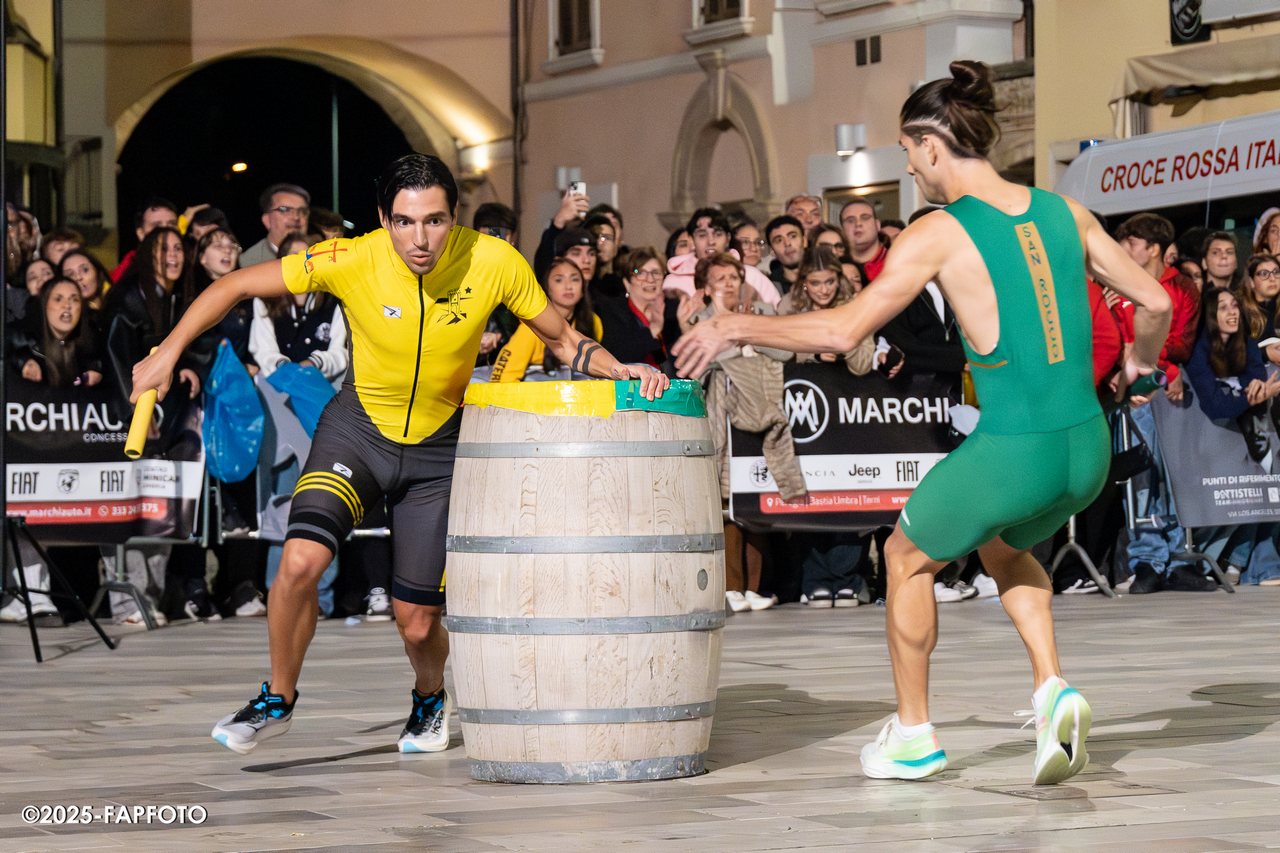 Alessandro Cozzali (Sant’Angelo) e Giulio Fiorelli (San Rocco) scendono appaiati; più staccati Giulio Chiurulla (Moncioveta) e Davide Falcinelli (Portella), che perdono terreno. Sussulto al secondo bidone: Fiorelli si infila per primo e porta, per la prima volta, San Rocco al comando. La gioia dura poco: Cozzali reagisce, lotta con tutto se stesso e lo supera in prossimità di FAP Foto, lanciandosi verso la zona cambio.