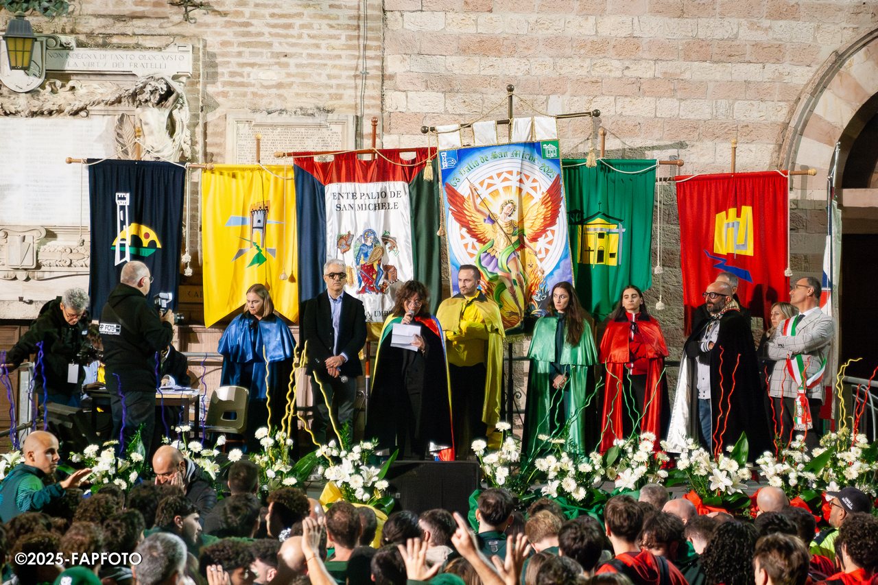 Dopo questo verdetto, la classifica finale del Palio vedeva appaiati San Rocco e Portella con 12 punti, ma proprio grazie all’impresa ottenuta nella Lizza (determinante in caso di ex aequo), il rione capitanato da Arianna Pettirossi si aggiudica la 63ª edizione del Palio de San Michele. Il Palio è stato realizzato dall’artista napoletana Lucia Fiore.