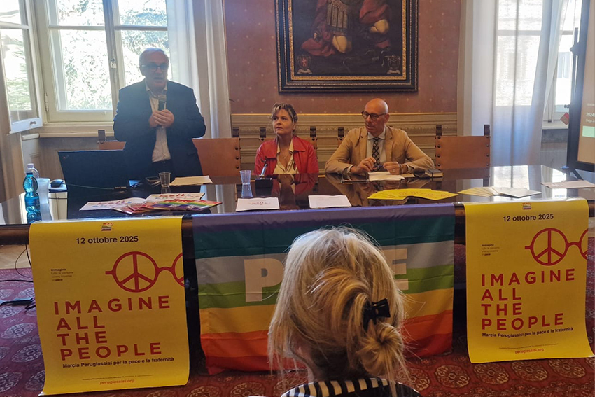 Alla conferenza stampa sono intervenuti Massimiliano Presciutti, Presidente della Provincia di Perugia; Laura Servi Vicepresidente della Provincia di Perugia, Fabiana Cruciani Coordinatrice della Rete Nazionale delle Scuole di Pace, Dirigente Scolastica dell’ITTS “A. Volta” di Perugia e Flavio Lotti presidente della Fondazione PerugiAssisi.