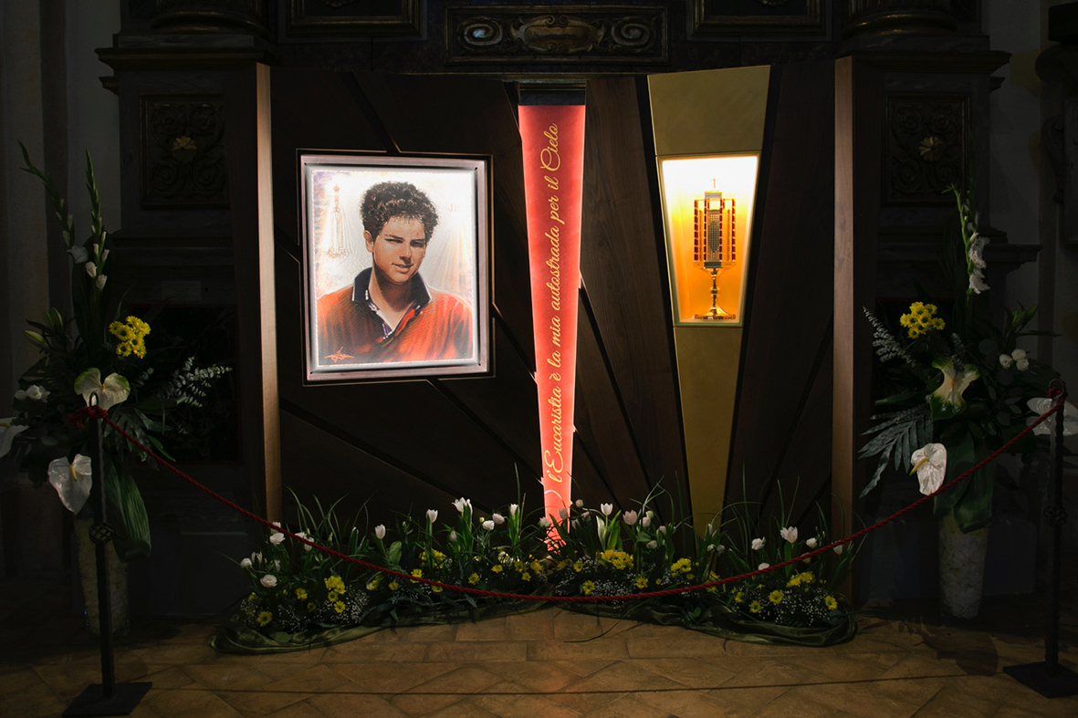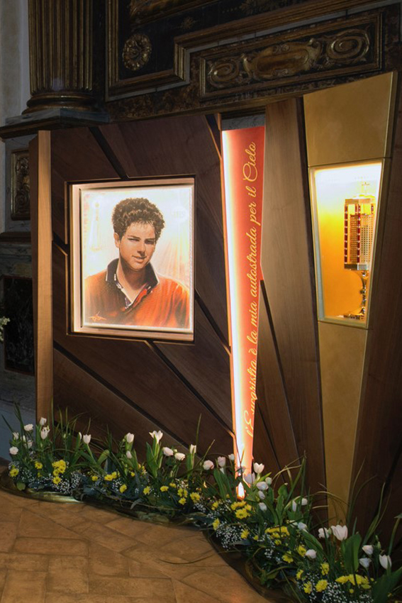 con la reliquia di San Carlo Acutis portata da alcuni giovani