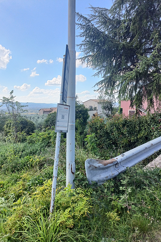 FERMATA AUTOBUS INVASA DALLA VEGETAZIONE E STRADA SENZA MARCIAPIEDI