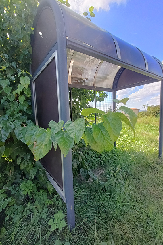 Anche la fermata dell’autobus, completamente invasa dalla vegetazione, è diventata un luogo insicuro e impraticabile: una situazione inaccettabile e