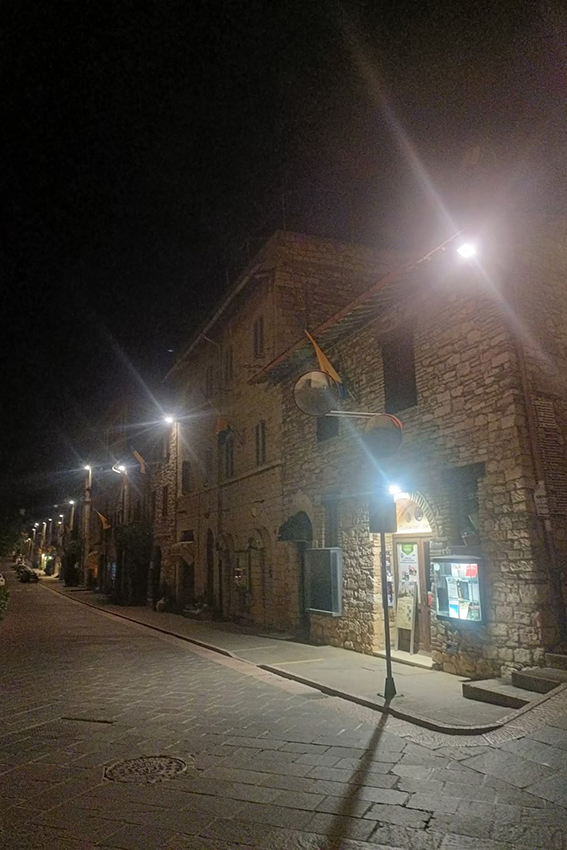 Oggi, con il ripristino dell’illuminazione, Assisi è tornata più luminosa e sicura.