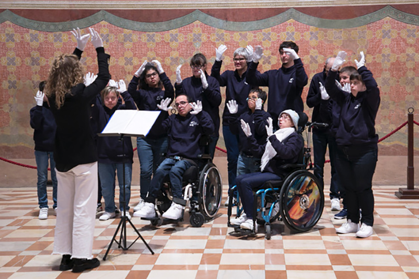 Assisi Pax Mundi 2025 si è aperta giovedì 16 nella chiesa inferiore della Basilica di San Francesco, con l’Istituto Preziosissimo Sangue di Bari e l’Akademia Cantus et Fidis Coro Matilde Salvador di Alghero. Venerdì 17 doppio appuntamento nella Cattedrale San Rufino con il Coro Ana dell’Adda di Olginate Calolziocorte e la Polifonica Arborense di Oristano; e nella Basilica di Santa Maria degli Angeli con il coro Manincanto di Portogruaro e Lux Verbi Ensemble di Sassari. E ancora, sabato 18 all’Abbazia di San Pietro è stata la volta dell’I.C. Manzoni Mottola di Taranto e del Resurrexit di Potenza, e a sera, nella Chiesa superiore della Basilica di San Francesco, si è tenuto il concerto di chiusura con la partecipazione di tutti i gruppi corali ai quali è stata consegnata una pergamena ricordo della partecipazione alla manifestazione.