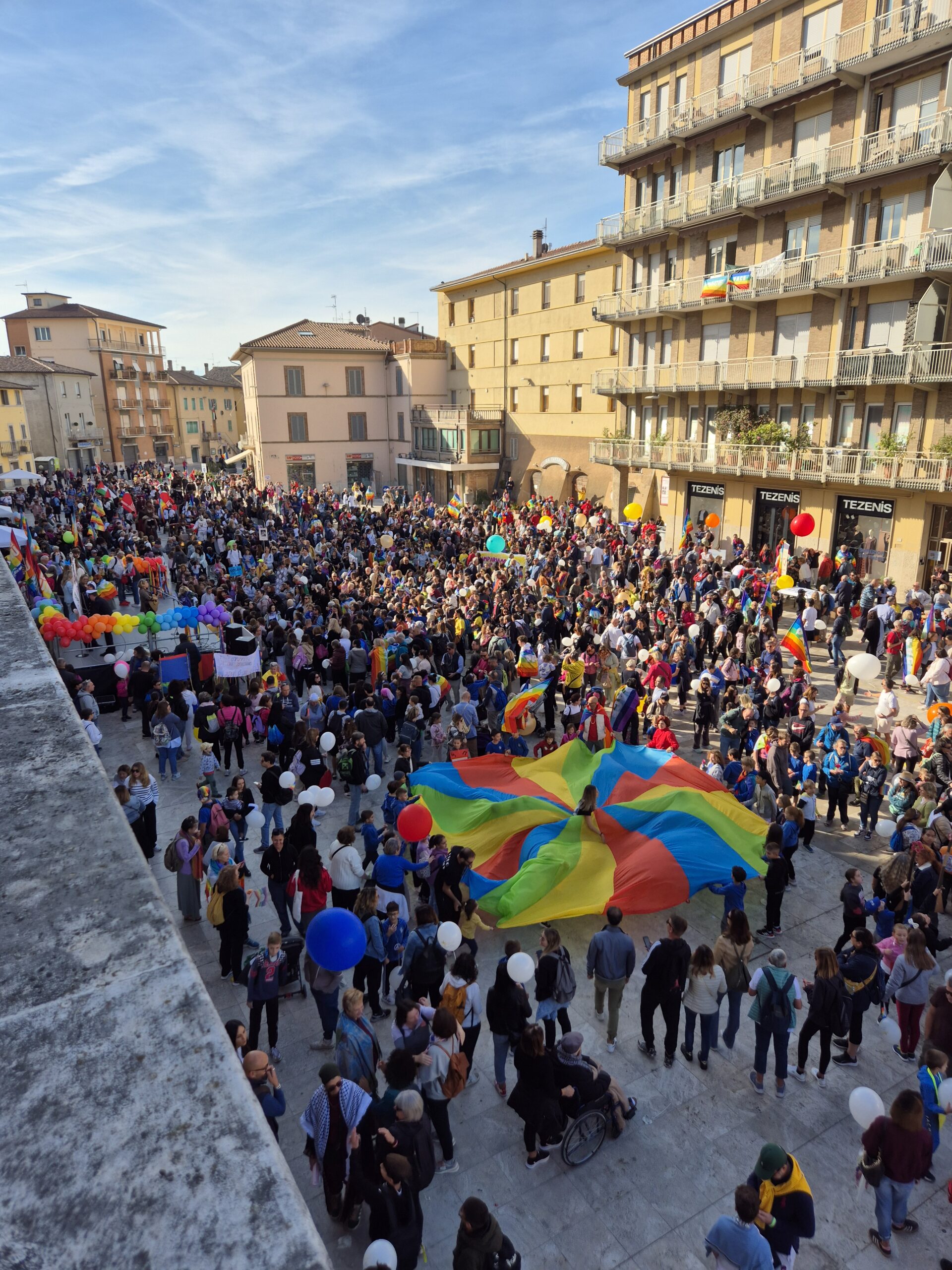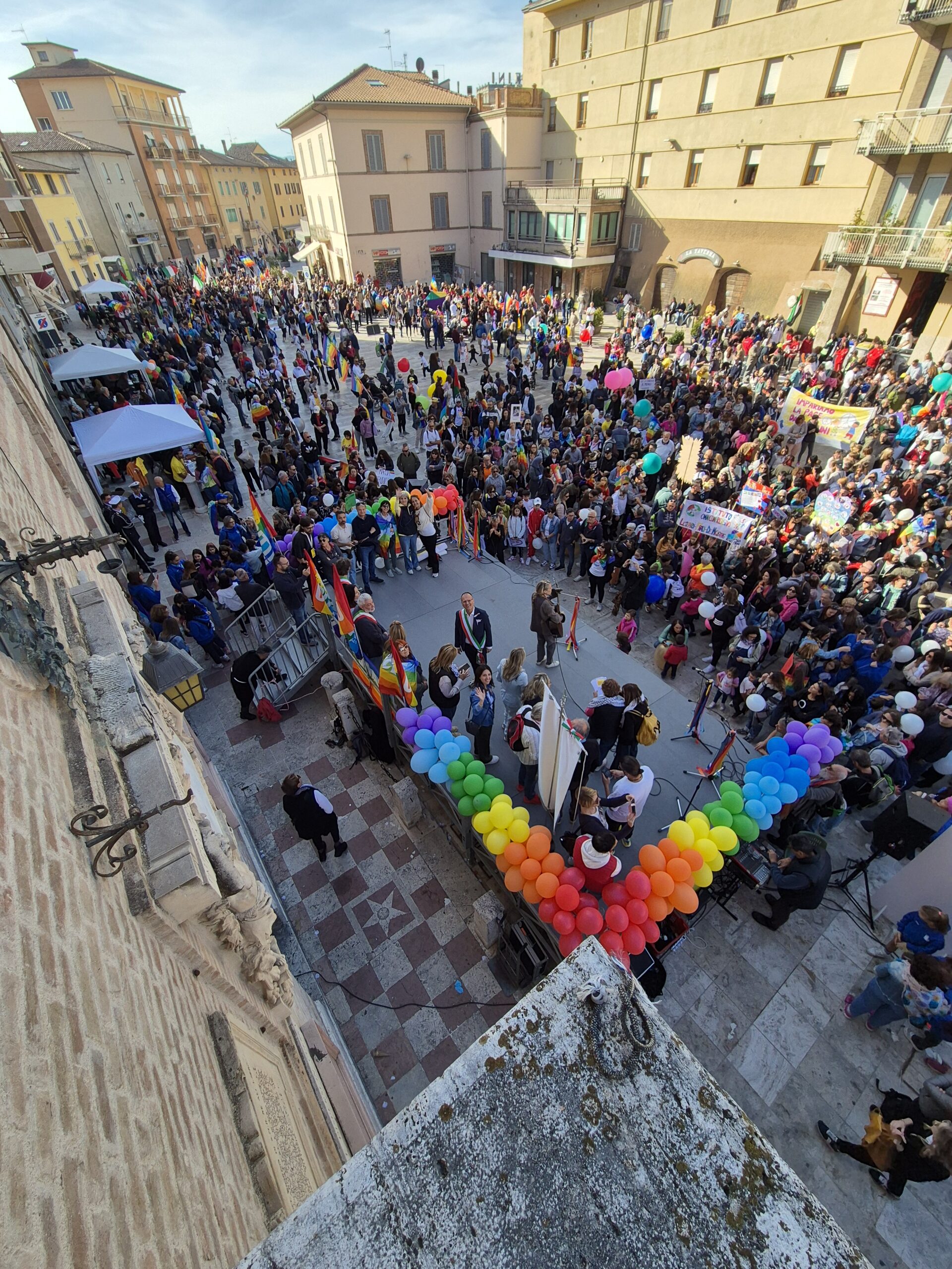 Dalle finestre e dai balconi del centro sventolavano le bandiere della Pace, e due di esse spiccavano proprio sopra la sede comunale e sulla terrazza della redazione di Terrenostre: un gesto semplice, ma denso di significato per chi, da sempre, crede nel valore del dialogo e della solidarietà. È stata una grande giornata per Bastia, per la Pace e per le bambine e i bambini che l’hanno vissuta con spontaneità e meraviglia.