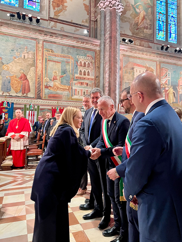 quali sono intervenuti anche la presidente del Consiglio dei Ministri Giorgia Meloni e il ministro alla cultura Alessandro Giuli, oltre alla presidente della Regione Umbria, Stefania Proietti e al presidente della Regione Abruzzo, Marco Marsilio. Proprio l’Abruzzo quest’anno ha donato l’olio per la lampada votiva sulla tomba del santo, accesa dal sindaco dell’Aquila, Pierluigi Biondi.