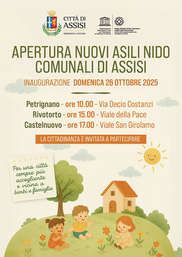 TRE NUOVI ASILI NIDO COMUNALI AD ASSISI, INAUGURAZIONE IL 26 OTTOBRE 2025
