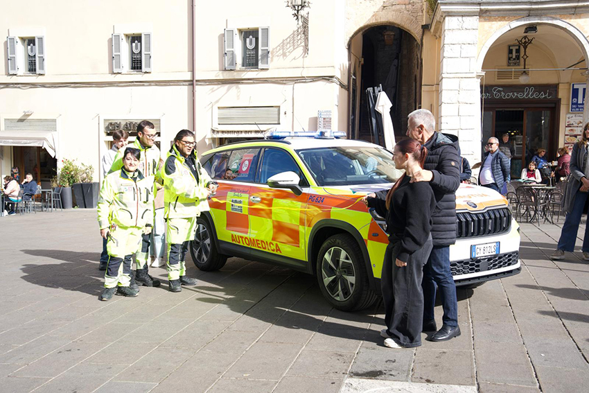 Particolarmente toccante è stata la consegna degli attestati di gratitudine per il contributo all’acquisto del dispositivo salvavita di ultima generazione, indispensabile per il supporto alle manovre rianimatorie nei casi di arresto cardiaco: garantisce compressioni toraciche efficaci, costanti e di alta qualità, aumentando significativamente le probabilità di sopravvivenza dei pazienti. L’apparecchio è stato donato dalla presidente di Automedigas, Manuela Castellani, insieme ai figli Luca, Elena, Giulia e Marta, in ricordo del marito Giosuè Paoletti. L’omaggio è stato accompagnato da una targa ricordo, consegnata dagli organizzatori dell’evento Simone Bendini, autista soccorritore del Pronto soccorso di Assisi, e da Giulia Olivi, medico del 118 di Assisi.